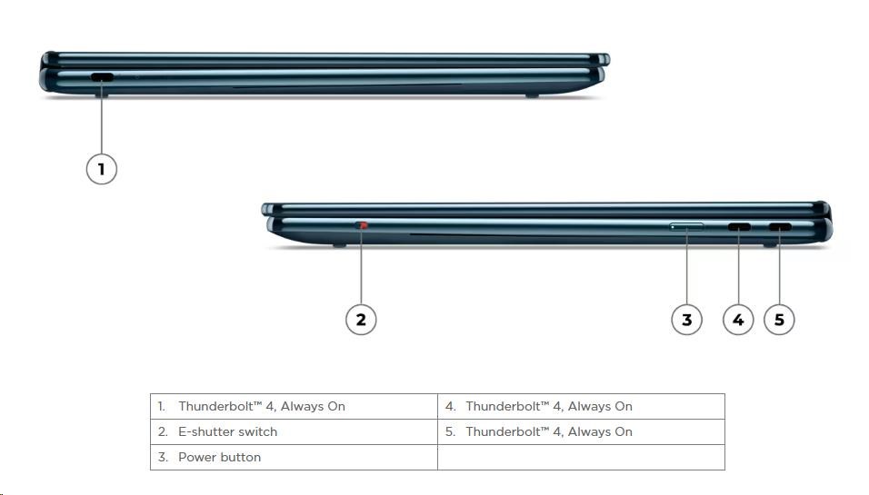 | Standartné porty | 3x USB-C® (Thunderbolt™ 4 / USB4® 40Gbps), with USB PD 3.0 and DisplayPort™ 2.1, Always On |