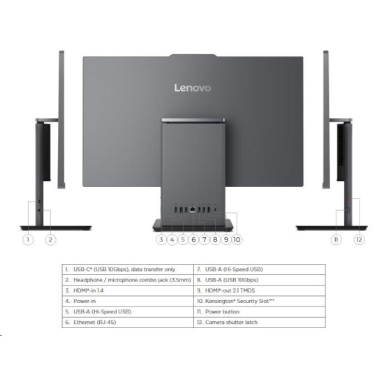 | Zadné porty | 1x USB-A (USB 10Gbps / USB 3.2 Gen 2) 2x USB-A (Hi-Speed USB / USB 2.0) 1x HDMI®-in 1.4 1x HDMI®-out 2.1 TMDS 1x Ethernet (RJ-45) 1x power connector |