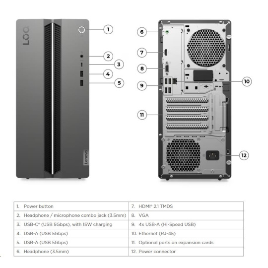 | Zadné porty | 4x USB-A (Hi-Speed USB / USB 2.0) 1x HDMI® 2.1 TMDS 1x VGA 1x Ethernet (RJ-45) 1x headphone (3.5mm) 1x power connector |