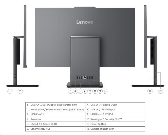 Zadné porty | 1x USB-A (USB 10Gbps / USB 3.2 Gen 2) 2x USB-A (Hi-Speed USB / USB 2.0) 1x HDMI®-in 1.4 1x HDMI®-out 2.1 TMDS 1x Ethernet (RJ-45) 1x power connector |