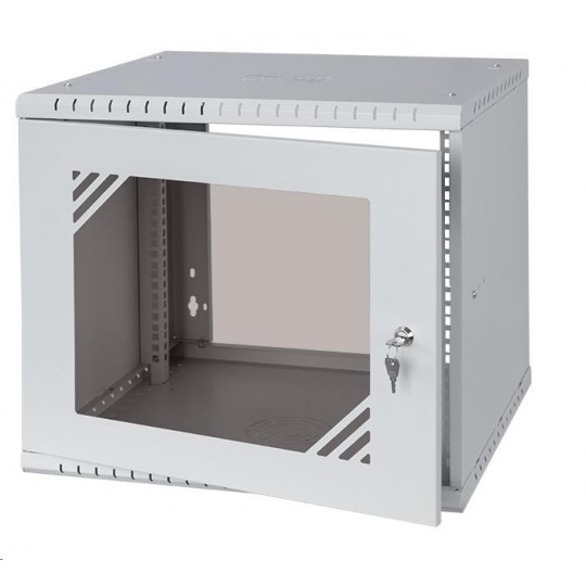 LEXI-Net 19" nástěnný rozvaděč Basic 9U 525x450, skleněné dveře, bez zad, rozložený, šedý
