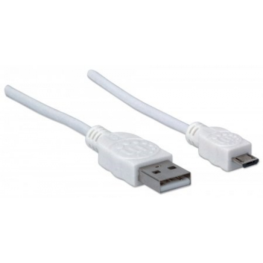 MANHATTAN Pripojovací kábel USB 2.0 A samec / Micro-B samec, 1.8 m, biela