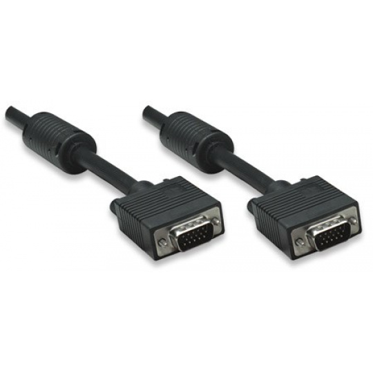 MANHATTAN Kábel SVGA k monitoru s feritovými jadrami, HD15 Male / HD15 Male, 1.8 m, čierna
