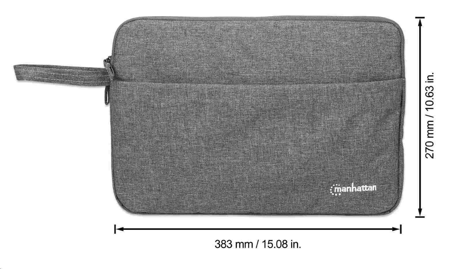 MANHATTAN Laptop Sleeve Seattle, vhodný pre širokouhlé obrazovky do 14.5", 383 x 270 x 30 mm, sivá