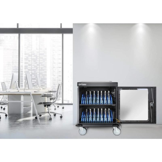 MANHATTAN nabíjecí vozík na notebooky - 32 míst, 32 portů, Až 15,6" - EU Zásuvka