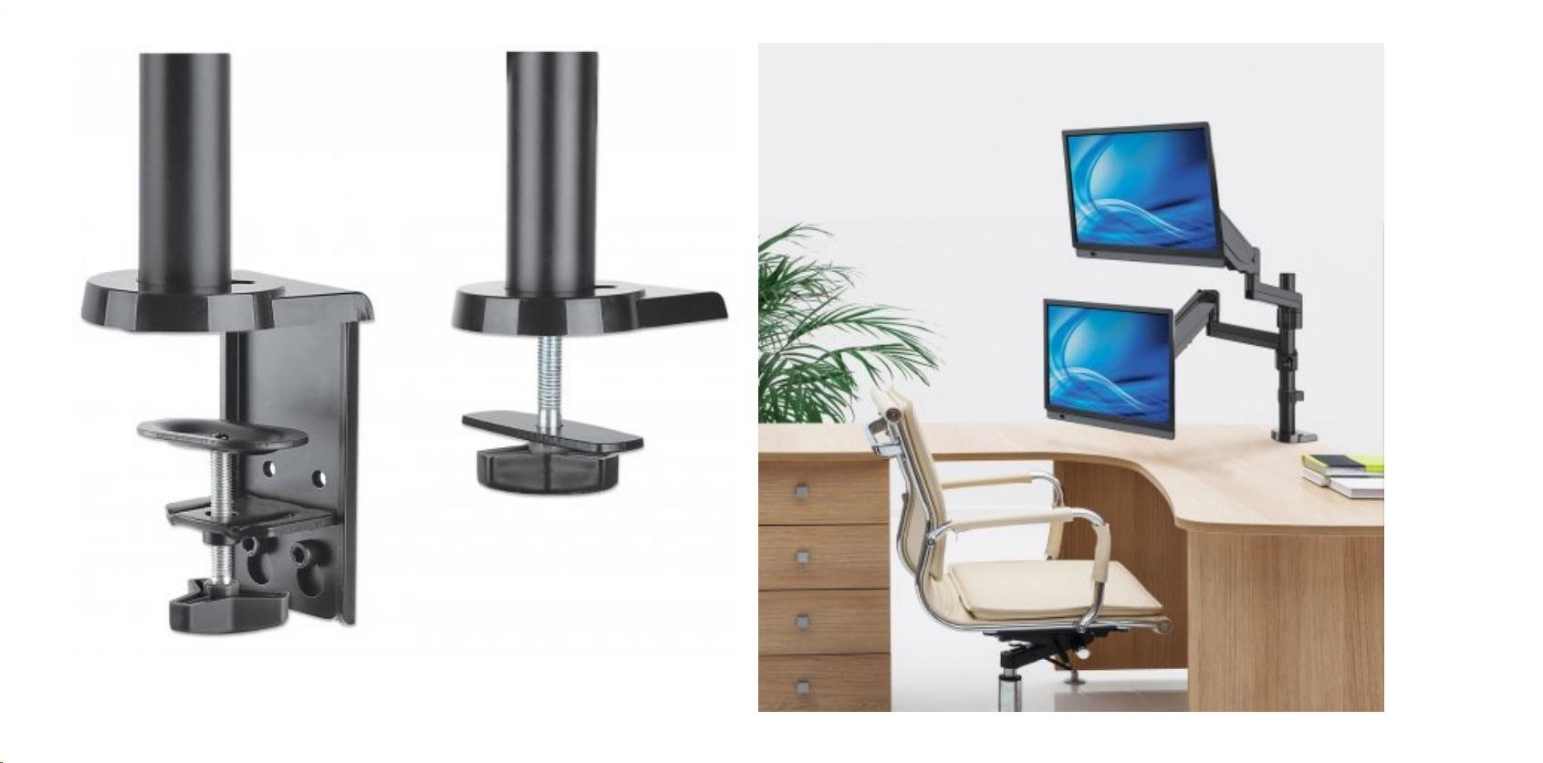 Univerzálny plynový pružinový držiak pre dva monitory