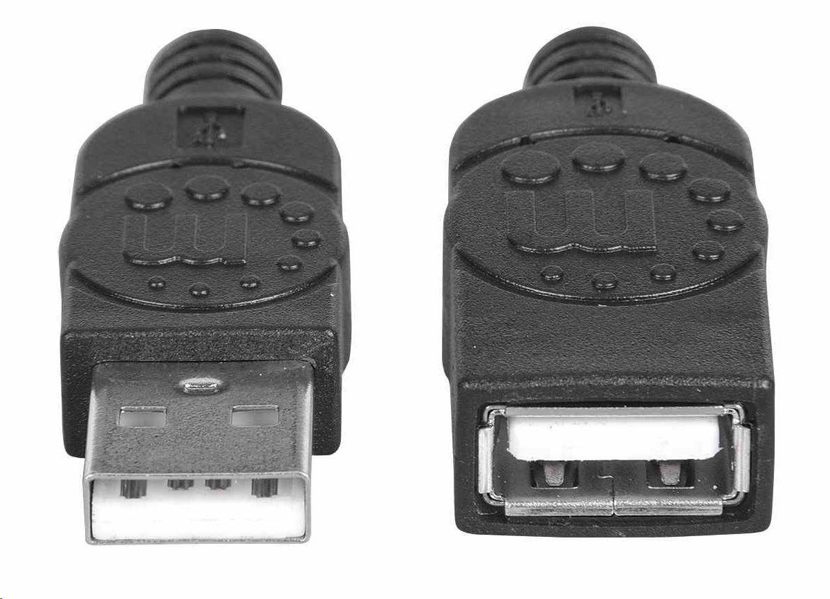 Manhattan USB kábel, USB 2.0, samec - samica, 480 Mb/s, 1 m, čierna