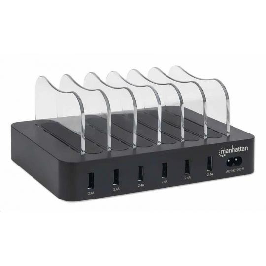 Manhattan USB nabíjacia stanica, 6-portová USB nabíjacia stanica, USB-A, čierna