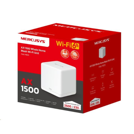 MERCUSYS Halo H60X(1-pack) WiFi6 Mesh (AX1500,2,4GHz/5GHz,3xGbELAN/WAN(1xXR Unit)