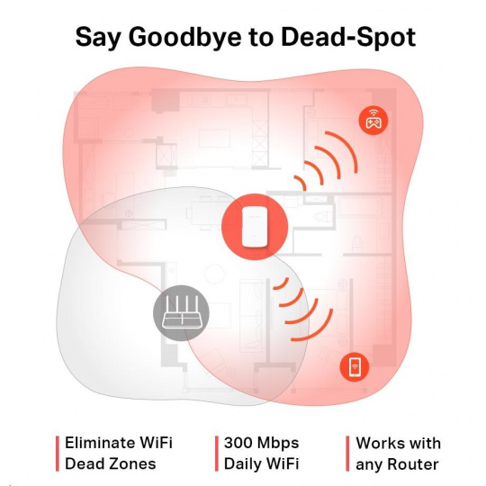 - Stále Wi-Fi s rýchlosťou 300 Mbit/s — doprajte si rýchlu a stabilnú Wi-Fi sieť s rýchlosťou až 300 Mbit/s, ktorá vyhovorí vašim každodenným potrebám