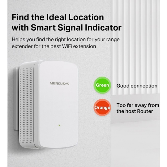 - Ukazovateľ signálu – farebný LED indikátor vám pomôže nájsť správne umiestnenie extenderu signálu, aby bolo Wi-Fi pokrytie čo najlepšie