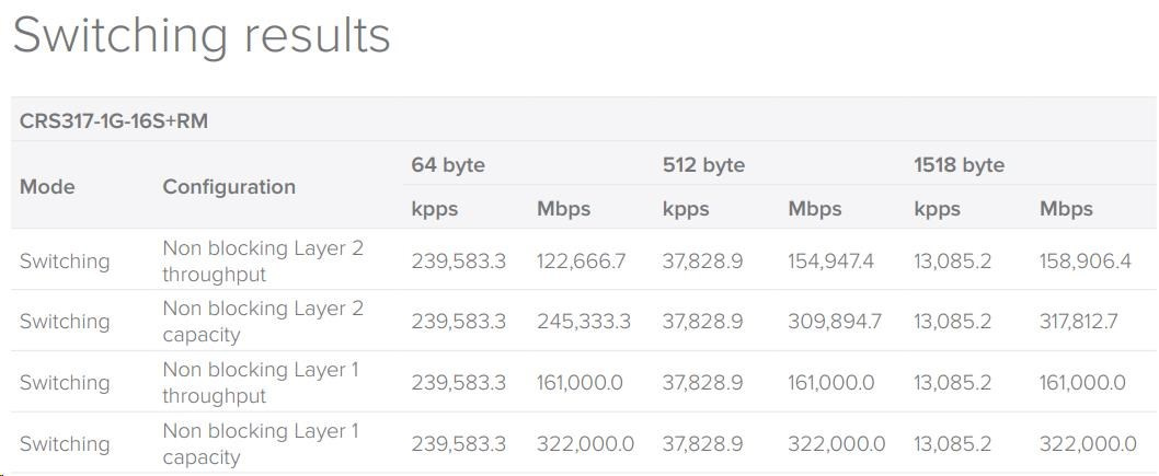 CRS317-1G-16S+RM je poháňaný novou generáciou čipov, ktorá poskytuje dostatočne vysoký výkon pre všetkých šestnásť portov 10G pri použití s ľubovoľnou veľkosťou ethernetového rámca. Nové funkcie, ako napríklad hardvérový protokol spanning-tree alebo Link Aggregation (LACP), poskytnú vašej sieti dostatočnú ochranu, spoľahlivosť a zvýšia jej úroveň na skutočne profesionálnu úroveň.