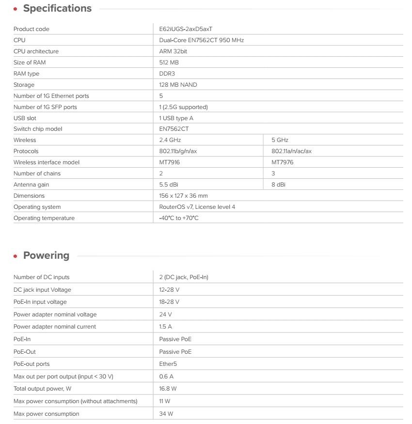 MikroTik E62iUGS-2axD5axT 2,4/5GHz WiFi 6 router hAP ax S