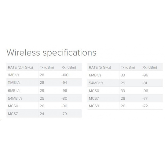 V porovnaní s rackovou verziou má táto 4 pevné všesmerové antény so ziskom 3dBi, o ktoré sa starajú 2 zabudované rádiové časti s modulačnými rýchlosťami 1733 Mb/s (5 GHz) a 300 Mb/s (2.4GHz).