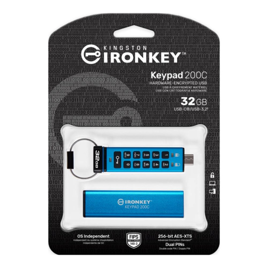 Rad Kingston IronKey Keypad 200 sa skladá z hardvérovo šifrovaných diskov USB typu A a USB typu C nezávislých na operačnom systéme s alfanumerickou klávesnicou pre jednoduchý prístup pomocou kódu PIN. KP200 obsahuje 256bitové hardvérové šifrovanie XTS-AES. Je tiež certifikovaný podľa štandardu FIPS 140-3 Level 3 (pending) pre zabezpečenie vojenskej úrovne s vylepšeniami, ktoré ďalej zvyšujú latku ochrany dát. Jeho obvody sú pokryté vrstvou špeciálneho epoxidu, ktorý prakticky znemožňuje vybratie súčiastok bez ich poškodenia; tento odolný epoxid bráni útokom na polovodičové súčiastky.