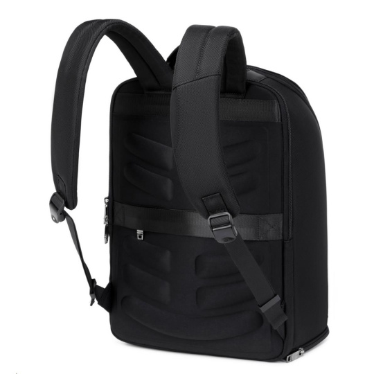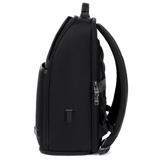 MYBALO ASTON Perfektní volba pro minimalisty s dobrým vkusem 6 ikon: - Nejtenčí batoh - Elegantní - Kapsa na notebook do 15,6" - Kapsa na tablet do 9" - Otevírání o 180 stupňů - USB a USB-C port - Drží tvar - Voděodolný - Skryté kapsy Elegantní a minimalistický Jedná se o velmi elegantní a minimalistický batoh. S tímto parťákem neuděláte chybu při běžném nošení do města, ani na důležité schůzce. Tenký batoh MYBALO Aston je batoh s vůbec nejmenší hloubkou z naší nabídky. Díky tomu působí elegantně a minimalisticky, ale i přesto se do něj vejdou všechny vaše nezbytnosti. Kvalitní voděodolný materiál, dlouhá životnost Kvalitní umělá kůže zajišťuje trvanlivost a odolnost batohu proti vodě a opotřebení. MYBALO Aston tak bude vaším společníkem opravdu dlouho. Drží tvar Batoh si zachovává svůj tvar také v případě, že jej budete mít úplně prázdný. Vestavěný USB a USB-C port Nabíjejte svá elektronická zařízení kdekoli a kdykoli díky vestavěnému USB a USB-C portu. Popruh k uchycení na kufr Cestujte pohodlně. Kdykoli chcete mít volná záda, jednoduše připevněte batoh na rukojeť svého kufru. Pohodlné polstrování Užijte si komfortní nošení díky kvalitnímu a prodyšnému polstrování ramenních popruhů a zádové části. Další praktické kapsy Zorganizujte si pohodlně a snadno své věci díky množství vychytaných kapes. Skryté kapsy V zádové části a na ramenním popruhu najdete skryté kapsy pro bezpečné uložení cenností. Vnitřní kapsy Vnitřní kapsy slouží pro snadnou organizaci všech vašich věcí. Přední kapsa Přední kapsa je určena pro věci, které chcete mít rychle a snadno po ruce. Parametry: - Rozměry: 46 x 30 x 9 cm - Objem: 11 l - Hmotnost: 1,19 kg - Kapsa na notebook: Ano (do vel. 15,6") - Kapsa na tablet: Ano (do vel. 9") - USB port: Ano - Voděodolnost: Ano - Hlavní materiál: Ekokůže + Polyester - Podšívka: Polyester - Barva: Černá.