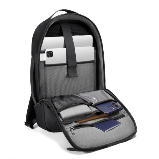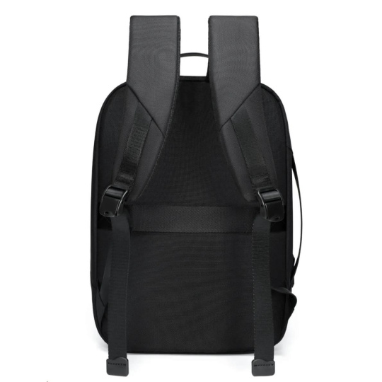 MYBALO ASTON Perfektní volba pro minimalisty s dobrým vkusem  6 ikon: - Nejtenčí batoh - Elegantní - Kapsa na notebook do 15,6" - Kapsa na tablet do 9" - Otevírání o 180 stupňů - USB a USB-C port - Drží tvar - Voděodolný - Skryté kapsy  Elegantní a minimalistický Jedná se o velmi elegantní a minimalistický batoh. S tímto parťákem neuděláte chybu při běžném nošení do města, ani na důležité schůzce.  Tenký batoh MYBALO Aston je batoh s vůbec nejmenší hloubkou z naší nabídky. Díky tomu působí elegantně a minimalisticky, ale i přesto se do něj vejdou všechny vaše nezbytnosti.  Kvalitní voděodolný materiál, dlouhá životnost Kvalitní umělá kůže zajišťuje trvanlivost a odolnost batohu proti vodě a opotřebení. MYBALO Aston tak bude vaším společníkem opravdu dlouho.  Drží tvar Batoh si zachovává svůj tvar také v případě, že jej budete mít úplně prázdný.  Vestavěný USB a USB-C port Nabíjejte svá elektronická zařízení kdekoli a kdykoli díky vestavěnému USB a USB-C portu.  Popruh k uchycení na kufr Cestujte pohodlně. Kdykoli chcete mít volná záda, jednoduše připevněte batoh na rukojeť svého kufru.  Pohodlné polstrování Užijte si komfortní nošení díky kvalitnímu a prodyšnému polstrování ramenních popruhů a zádové části.  Další praktické kapsy Zorganizujte si pohodlně a snadno své věci díky množství vychytaných kapes.  Skryté kapsy V zádové části a na ramenním popruhu najdete skryté kapsy pro bezpečné uložení cenností.  Vnitřní kapsy Vnitřní kapsy slouží pro snadnou organizaci všech vašich věcí.  Přední kapsa Přední kapsa je určena pro věci, které chcete mít rychle a snadno po ruce.  Parametry: - Rozměry: 46 x 30 x 9 cm - Objem: 11 l - Hmotnost: 1,19 kg - Kapsa na notebook: Ano (do vel. 15,6") - Kapsa na tablet: Ano (do vel. 9") - USB port: Ano - Voděodolnost: Ano - Hlavní materiál: Ekokůže + Polyester - Podšívka: Polyester - Barva: Černá