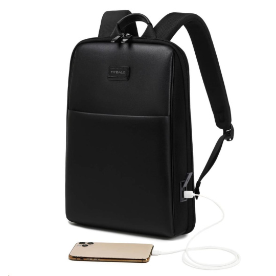 MYBALO ASTON Perfektní volba pro minimalisty s dobrým vkusem  6 ikon: - Nejtenčí batoh - Elegantní - Kapsa na notebook do 15,6" - Kapsa na tablet do 9" - Otevírání o 180 stupňů - USB a USB-C port - Drží tvar - Voděodolný - Skryté kapsy  Elegantní a minimalistický Jedná se o velmi elegantní a minimalistický batoh. S tímto parťákem neuděláte chybu při běžném nošení do města, ani na důležité schůzce.  Tenký batoh MYBALO Aston je batoh s vůbec nejmenší hloubkou z naší nabídky. Díky tomu působí elegantně a minimalisticky, ale i přesto se do něj vejdou všechny vaše nezbytnosti.  Kvalitní voděodolný materiál, dlouhá životnost Kvalitní umělá kůže zajišťuje trvanlivost a odolnost batohu proti vodě a opotřebení. MYBALO Aston tak bude vaším společníkem opravdu dlouho.  Drží tvar Batoh si zachovává svůj tvar také v případě, že jej budete mít úplně prázdný.  Vestavěný USB a USB-C port Nabíjejte svá elektronická zařízení kdekoli a kdykoli díky vestavěnému USB a USB-C portu.  Popruh k uchycení na kufr Cestujte pohodlně. Kdykoli chcete mít volná záda, jednoduše připevněte batoh na rukojeť svého kufru.  Pohodlné polstrování Užijte si komfortní nošení díky kvalitnímu a prodyšnému polstrování ramenních popruhů a zádové části.  Další praktické kapsy Zorganizujte si pohodlně a snadno své věci díky množství vychytaných kapes.  Skryté kapsy V zádové části a na ramenním popruhu najdete skryté kapsy pro bezpečné uložení cenností.  Vnitřní kapsy Vnitřní kapsy slouží pro snadnou organizaci všech vašich věcí.  Přední kapsa Přední kapsa je určena pro věci, které chcete mít rychle a snadno po ruce.  Parametry: - Rozměry: 46 x 30 x 9 cm - Objem: 11 l - Hmotnost: 1,19 kg - Kapsa na notebook: Ano (do vel. 15,6") - Kapsa na tablet: Ano (do vel. 9") - USB port: Ano - Voděodolnost: Ano - Hlavní materiál: Ekokůže + Polyester - Podšívka: Polyester - Barva: Černá