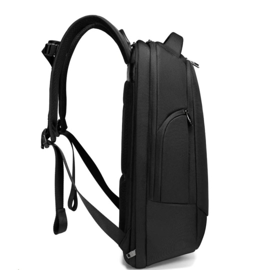 MYBALO ASTON Perfektní volba pro minimalisty s dobrým vkusem  6 ikon: - Nejtenčí batoh - Elegantní - Kapsa na notebook do 15,6" - Kapsa na tablet do 9" - Otevírání o 180 stupňů - USB a USB-C port - Drží tvar - Voděodolný - Skryté kapsy  Elegantní a minimalistický Jedná se o velmi elegantní a minimalistický batoh. S tímto parťákem neuděláte chybu při běžném nošení do města, ani na důležité schůzce.  Tenký batoh MYBALO Aston je batoh s vůbec nejmenší hloubkou z naší nabídky. Díky tomu působí elegantně a minimalisticky, ale i přesto se do něj vejdou všechny vaše nezbytnosti.  Kvalitní voděodolný materiál, dlouhá životnost Kvalitní umělá kůže zajišťuje trvanlivost a odolnost batohu proti vodě a opotřebení. MYBALO Aston tak bude vaším společníkem opravdu dlouho.  Drží tvar Batoh si zachovává svůj tvar také v případě, že jej budete mít úplně prázdný.  Vestavěný USB a USB-C port Nabíjejte svá elektronická zařízení kdekoli a kdykoli díky vestavěnému USB a USB-C portu.  Popruh k uchycení na kufr Cestujte pohodlně. Kdykoli chcete mít volná záda, jednoduše připevněte batoh na rukojeť svého kufru.  Pohodlné polstrování Užijte si komfortní nošení díky kvalitnímu a prodyšnému polstrování ramenních popruhů a zádové části.  Další praktické kapsy Zorganizujte si pohodlně a snadno své věci díky množství vychytaných kapes.  Skryté kapsy V zádové části a na ramenním popruhu najdete skryté kapsy pro bezpečné uložení cenností.  Vnitřní kapsy Vnitřní kapsy slouží pro snadnou organizaci všech vašich věcí.  Přední kapsa Přední kapsa je určena pro věci, které chcete mít rychle a snadno po ruce.  Parametry: - Rozměry: 46 x 30 x 9 cm - Objem: 11 l - Hmotnost: 1,19 kg - Kapsa na notebook: Ano (do vel. 15,6") - Kapsa na tablet: Ano (do vel. 9") - USB port: Ano - Voděodolnost: Ano - Hlavní materiál: Ekokůže + Polyester - Podšívka: Polyester - Barva: Černá