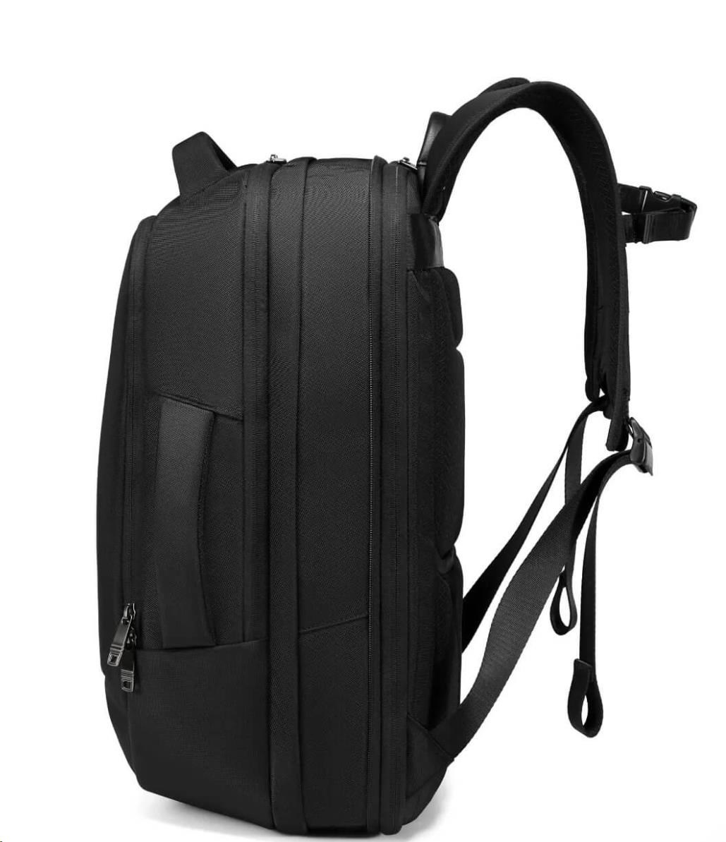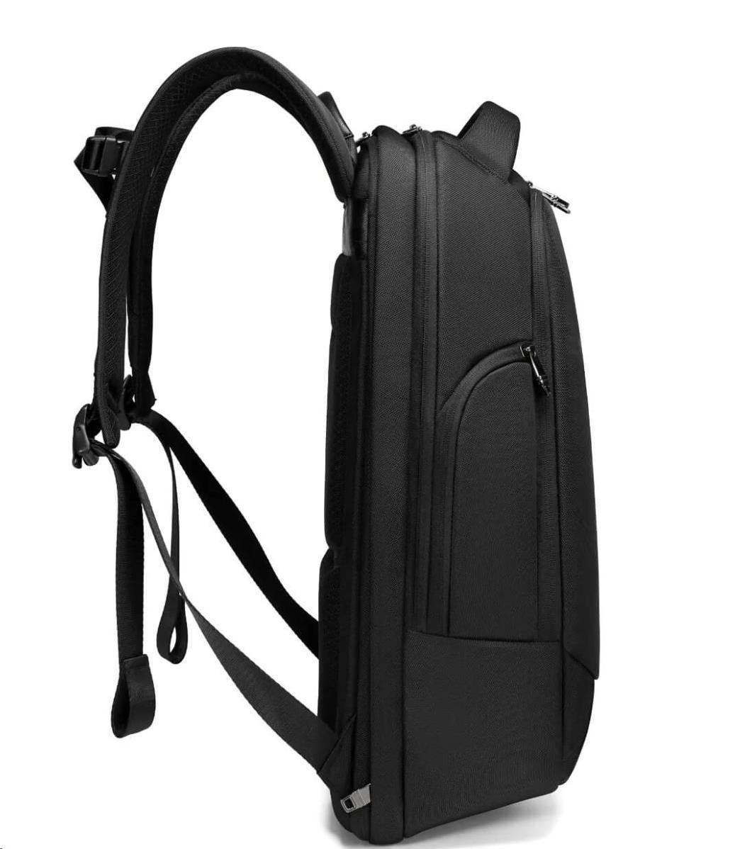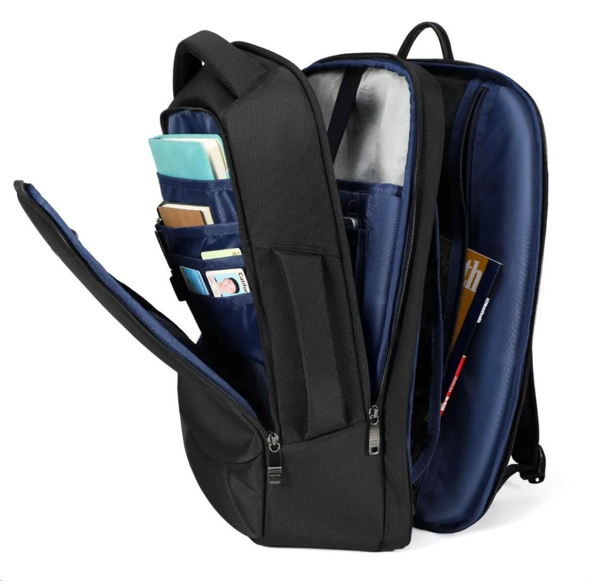 MYBALO ASTON Perfektní volba pro minimalisty s dobrým vkusem  6 ikon: - Nejtenčí batoh - Elegantní - Kapsa na notebook do 15,6" - Kapsa na tablet do 9" - Otevírání o 180 stupňů - USB a USB-C port - Drží tvar - Voděodolný - Skryté kapsy  Elegantní a minimalistický Jedná se o velmi elegantní a minimalistický batoh. S tímto parťákem neuděláte chybu při běžném nošení do města, ani na důležité schůzce.  Tenký batoh MYBALO Aston je batoh s vůbec nejmenší hloubkou z naší nabídky. Díky tomu působí elegantně a minimalisticky, ale i přesto se do něj vejdou všechny vaše nezbytnosti.  Kvalitní voděodolný materiál, dlouhá životnost Kvalitní umělá kůže zajišťuje trvanlivost a odolnost batohu proti vodě a opotřebení. MYBALO Aston tak bude vaším společníkem opravdu dlouho.  Drží tvar Batoh si zachovává svůj tvar také v případě, že jej budete mít úplně prázdný.  Vestavěný USB a USB-C port Nabíjejte svá elektronická zařízení kdekoli a kdykoli díky vestavěnému USB a USB-C portu.  Popruh k uchycení na kufr Cestujte pohodlně. Kdykoli chcete mít volná záda, jednoduše připevněte batoh na rukojeť svého kufru.  Pohodlné polstrování Užijte si komfortní nošení díky kvalitnímu a prodyšnému polstrování ramenních popruhů a zádové části.  Další praktické kapsy Zorganizujte si pohodlně a snadno své věci díky množství vychytaných kapes.  Skryté kapsy V zádové části a na ramenním popruhu najdete skryté kapsy pro bezpečné uložení cenností.  Vnitřní kapsy Vnitřní kapsy slouží pro snadnou organizaci všech vašich věcí.  Přední kapsa Přední kapsa je určena pro věci, které chcete mít rychle a snadno po ruce.  Parametry: - Rozměry: 46 x 30 x 9 cm - Objem: 11 l - Hmotnost: 1,19 kg - Kapsa na notebook: Ano (do vel. 15,6") - Kapsa na tablet: Ano (do vel. 9") - USB port: Ano - Voděodolnost: Ano - Hlavní materiál: Ekokůže + Polyester - Podšívka: Polyester - Barva: Černá