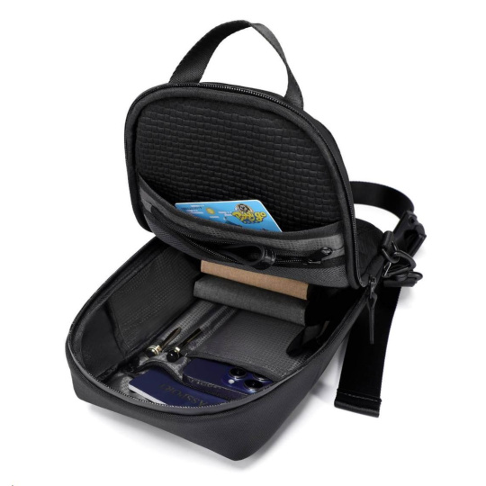 MYBALO ASTON Perfektní volba pro minimalisty s dobrým vkusem 6 ikon: - Nejtenčí batoh - Elegantní - Kapsa na notebook do 15,6" - Kapsa na tablet do 9" - Otevírání o 180 stupňů - USB a USB-C port - Drží tvar - Voděodolný - Skryté kapsy Elegantní a minimalistický Jedná se o velmi elegantní a minimalistický batoh. S tímto parťákem neuděláte chybu při běžném nošení do města, ani na důležité schůzce. Tenký batoh MYBALO Aston je batoh s vůbec nejmenší hloubkou z naší nabídky. Díky tomu působí elegantně a minimalisticky, ale i přesto se do něj vejdou všechny vaše nezbytnosti. Kvalitní voděodolný materiál, dlouhá životnost Kvalitní umělá kůže zajišťuje trvanlivost a odolnost batohu proti vodě a opotřebení. MYBALO Aston tak bude vaším společníkem opravdu dlouho. Drží tvar Batoh si zachovává svůj tvar také v případě, že jej budete mít úplně prázdný. Vestavěný USB a USB-C port Nabíjejte svá elektronická zařízení kdekoli a kdykoli díky vestavěnému USB a USB-C portu. Popruh k uchycení na kufr Cestujte pohodlně. Kdykoli chcete mít volná záda, jednoduše připevněte batoh na rukojeť svého kufru. Pohodlné polstrování Užijte si komfortní nošení díky kvalitnímu a prodyšnému polstrování ramenních popruhů a zádové části. Další praktické kapsy Zorganizujte si pohodlně a snadno své věci díky množství vychytaných kapes. Skryté kapsy V zádové části a na ramenním popruhu najdete skryté kapsy pro bezpečné uložení cenností. Vnitřní kapsy Vnitřní kapsy slouží pro snadnou organizaci všech vašich věcí. Přední kapsa Přední kapsa je určena pro věci, které chcete mít rychle a snadno po ruce. Parametry: - Rozměry: 46 x 30 x 9 cm - Objem: 11 l - Hmotnost: 1,19 kg - Kapsa na notebook: Ano (do vel. 15,6") - Kapsa na tablet: Ano (do vel. 9") - USB port: Ano - Voděodolnost: Ano - Hlavní materiál: Ekokůže + Polyester - Podšívka: Polyester - Barva: Černá.