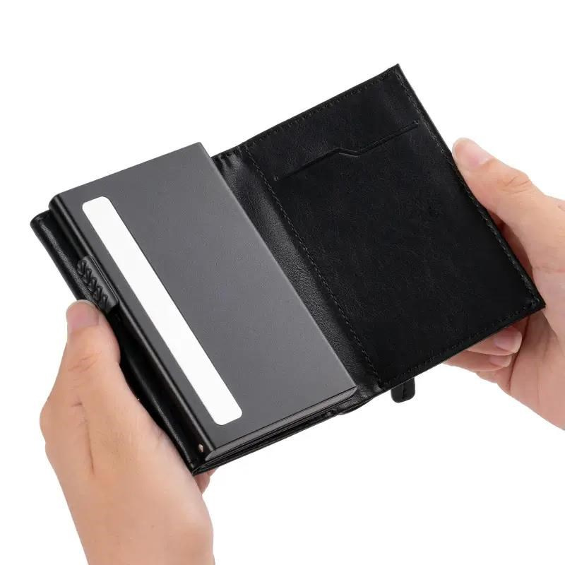 Elegantná peňaženka na karty s rýchlym prístupom a RFID ochranou. Spoľahlivo zabezpečí vaše karty pred poškodením aj rizikom digitálnej krádeže. Pojme 1 až 6 kariet a vďaka hliníkovému držiaku s praktickým tlačidlom je ich vysunutie otázkou sekundy. Skladačka peňaženka Ventra s praktickým magnetickým zapínaním zabezpečuje nielen luxusný vzhľad. Vestavěné magnetické zapínanie spoľahlivo zabezpečí karty aj hotovosť, takže sa nemusíte obávať ich vypadnutia. Vďaka kompaktným rozmerom sa peňaženka pohodlne vojde do každej kapsy.