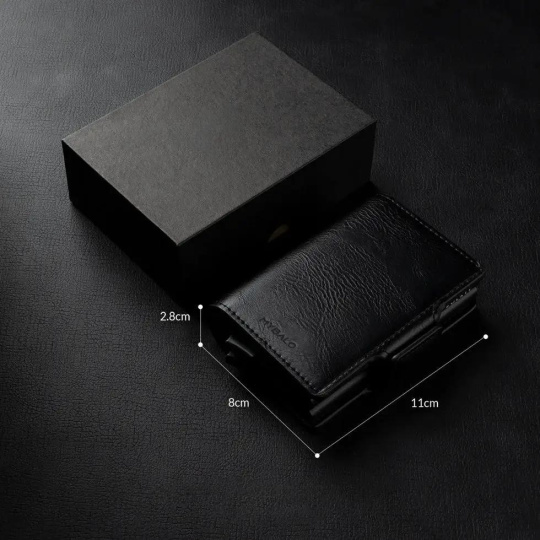 MYBALO Oslo je elegantná minimalistická peňaženka z vysoko odolnej PU kože, ktorá zaujme sofistikovaným vzhľadom doplneným o precízne sedlové ručné prešívanie. Vďaka praktickému mechanizmu stačí ľahko posunúť páčku a až desať kariet sa elegantne vysunie do prehľadného vrstveného usporiadania, v ktorom ľahko nájdete tú pravú. Integrované hliníkové puzdro navyše spoľahlivo chráni vaše karty pred nechceným skenovaním vďaka technológii RFID/NFC blokácie. Peňaženka je určená celkom na až 14 kariet: 10 v hliníkovom puzdre a ďalšie 4 v pridavných priečkach. Nechýba ani priestor na bankovky či drobnú hotovosť. Dodáva sa v elegantnom darčekovom balení, takže je skvelou voľbou nielen pre vás, ale aj ako štýlový darček pre niekoho blízkeho.