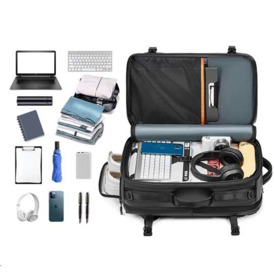 Chcete využiť MYBALO Traveler do práce alebo na dôležité stretnutie a nechcete mať na chrbte batoh? Žiadny problém! Jednoducho skryte ramenné popruhy do pripravených vreciek a noste ho ako tašku do ruky alebo po pripnutí ramenného popruhu ako tašku na rameno.