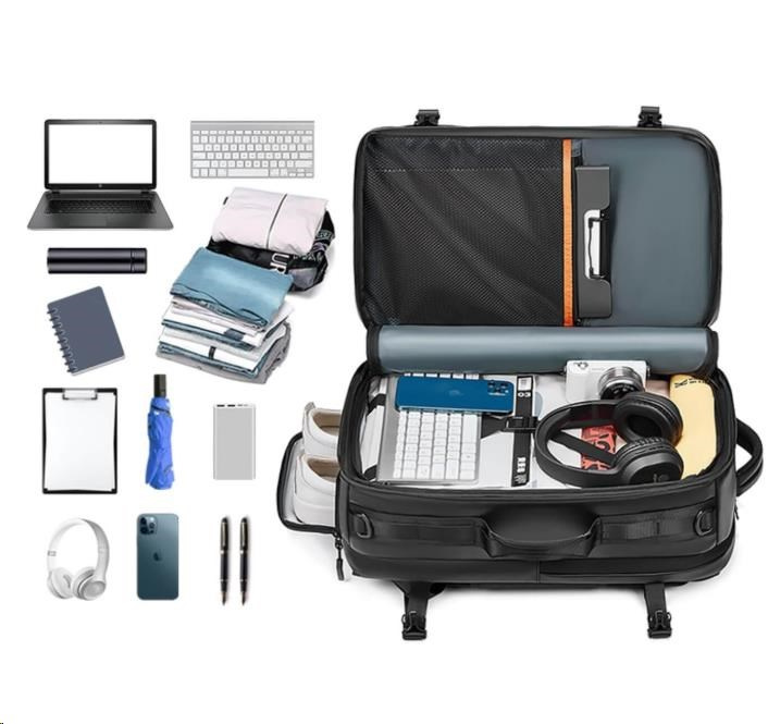 Chcete využiť MYBALO Traveler do práce alebo na dôležité stretnutie a nechcete mať na chrbte batoh? Žiadny problém! Jednoducho skryte ramenné popruhy do pripravených vreciek a noste ho ako tašku do ruky alebo po pripnutí ramenného popruhu ako tašku na rameno.
