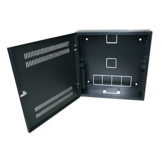 Skrine určené na inštaláciu v interiéri. Sú vhodné najmä na inštaláciu 19" zariadení alebo rozvodných panelov s minimálnou hĺbkou. 19" zariadenia sa inštalujú "na výšku". To umožňuje inštaláciu výkonnejšieho 2U ethernetového prepínača (resp. do 3,1U) s distribučnými panelmi s celkovou plochou 4U. Montáž na stenu zavesením. Zámok je jednoduchý, možno ho vymeniť. - Rozmery: - Vonkajšia šírka: 540 mm - Vonkajšia hĺbka: 150 mm (s dvierkami 170 mm) - Vonkajšia výška: 550 mm - Využiteľná vnútorná výška: 540 mm - Materiál skrinky: valcovaná oceľ, hrúbka 0,8 mm - Farba: smaltovaná, čierna - Vzdialenosť koľajničiek od stropu je 260 mm a od dna 280 mm. Maximálne rozmery aktívneho prvku, ktorý možno inštalovať na výšku: šírka 19", hĺbka 140 mm (merané od 19" montáže), max. 140 mm (držiak je určený pre 2U). Maximálna hĺbka inštalovateľného patch panelu je 95 mm...