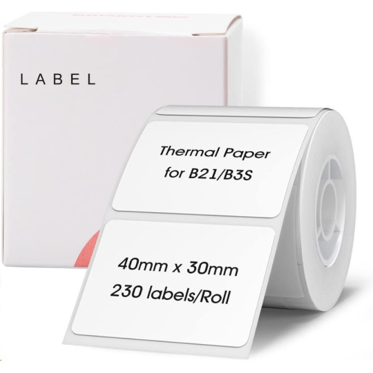 Balenie obsahuje 1x rolu bielych samolepiacich štítkov Niimbot o rozmere 40x30mm - 230ks.