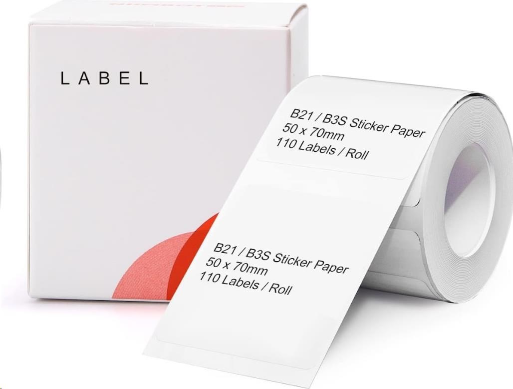 Balenie obsahuje 1x rolu bielych samolepiacich štítkov Niimbot o rozmere 50x70mm - 110ks.