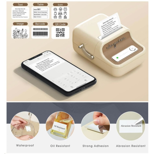 Zabudnite na zdĺhavé a komplikované procesy tlače štítkov. S NIIMBOT B21S je tlač štítkov hračka vďaka jej bezdrôtovej technológii a vynikajúcim funkciám. Táto prenášačná tlačiareň štítkov je vybavená dobíjateľnou lítiovou batériou, ktorá vám umožní tlačiť kdekoľvek a kedykoľvek budete potrebovať po dobu 4 až 5 hodín. S NIIMBOT B21S môžete jednoducho označovať veci v kancelárii, škole, obchode a na mnoho ďalších miestach. Jej kompatibilita s PC a systémami Android a iOS znamená, že môžete tlačiť priamo zo svojho smartfónu alebo tabletu, čo zaisťuje maximálne pohodlie a efektívnosť.