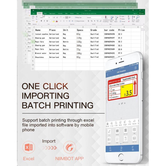Model Niimbot B21S umožňuje tiež tlač priamo z PC. Do aplikácie Niimbot si tiež môžete napríklad naimportovať pripravené dáta z Excellu.