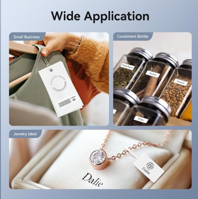 Pri navrhovaní štítku môžete použiť rôzne písma, tvary, ikony, veľkosti a formáty, aby ste si vytlačili štítky alebo štítky podľa svojej predstavy. Môžete importovať fotografie z vášho telefónu alebo obrázky z internetu, aby bol dizajn unikátnejší. Bezplatná aplikácia pre iOS alebo Android ponúka viac ako 1500 ikoniek, viac ako 100 rámikov, 19 fontov písma a umožňuje aj tlač QR kódov. Môžete si vybrať z rôznych štýlov písma, veľkostí a formátov, aby ste si vytlačili štítky alebo štítky presne podľa svojej predstavy. Tlačiareň automaticky rozpozná vložené štítky a aplikácia prispôsobí rozmery pre tlač.
