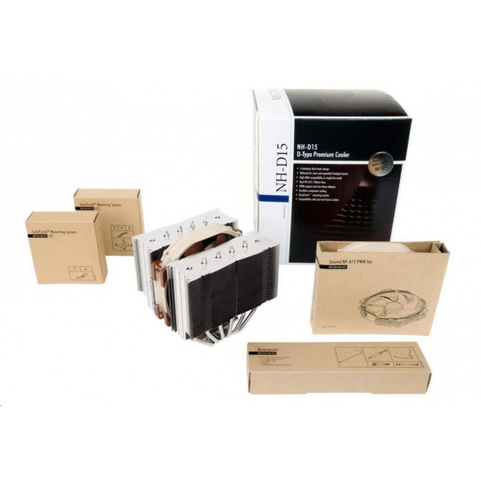 Postavený na základe legendárneho NH-D14 a pokračujúc vo svojej snahe o dokonalý tichý výkon chladenia, flagship model NH-D15 od spoločnosti Noctua je vrcholný dvojitý vežový chladič pre najnáročnejších používateľov. Rozšírené usporiadanie heatpipe a dva prémiové ventilátory NF-A15 140mm s podporou PWM pre automatickú reguláciu rýchlosti mu umožňujú ešte vylepšiť ocenenú účinnosť NH-D14. Vrchom je spoľahlivý, profesionálny SecuFirm2™ viacpórový montážny systém, osvedčená tepelná pasta NT-H1 od Noctua a kompletná 6-ročná záruka výrobcu, čím NH-D15 predstavuje kompletné riešenie najvyššej kvality, ktoré je ideálne pre overclocking a tichých nadšencov.