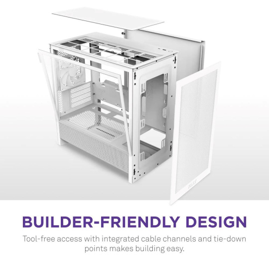 Skriňa H3 Flow micro-ATX kombinuje priestorovo úsporný dizajn s vysokým výkonom. Je navrhnutá tak, aby podporovala komponenty plnej veľkosti, a je vybavená panelmi s veľmi jemnou sieťovinou a odvetrávaným krytom zdroja, ktoré udržiavajú konzistentný a optimalizovaný prúdenie vzduchu v celej zostave.