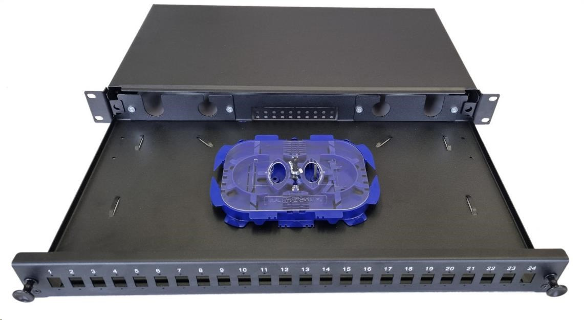 Optická vaňa výsuvná 1U, 24x SC simplex (24x LC duplex, 24x E2000) s kazetou OPTRONIC pre 24 zváraní