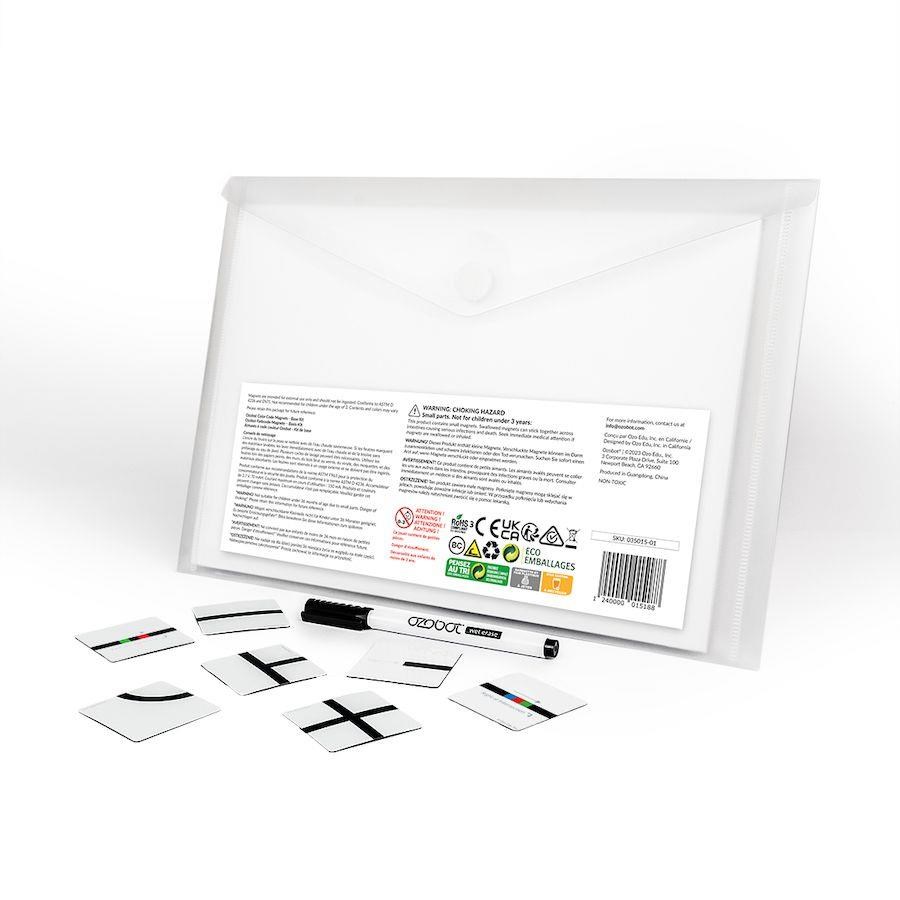 Základná magnetická sada Ozobot je kombináciou farebných kódov Ozobot a dielikov na sledovanie trasy pomocou čiernej línie. Umožňuje žiakom rozvíjať skúsenosti v širokom spektre zručností. Magnety s farebnými kódmi a čiarami majú vhodnú veľkosť a ľahko sa používajú. Manipuluje sa s nimi jednoducho vďaka praktickým rozmerom a sú ideálne pre mladých žiakov, ktorí práve začínajú objavovať svet interaktívneho kódovania.Kvalita a dlhá životnosť