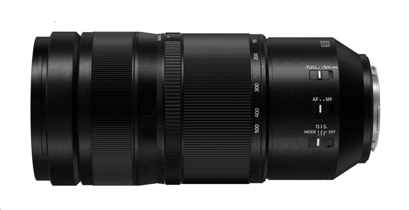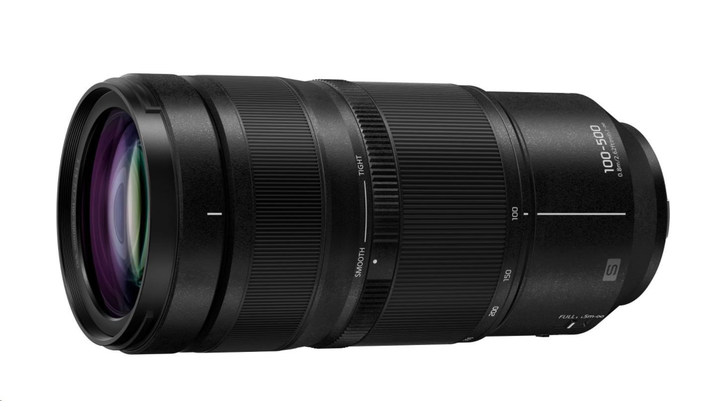 Ultra kompaktný teleobjektív Lumix S pre fotografovanie a video vo 8K rozlíšení, ohnisková vzdialenosť 100–500 mm s možnosťou predĺženia až na 1000 mm (s 1.4×/2.0× telekonvertorom), optická stabilizácia obrazu O.I.S.