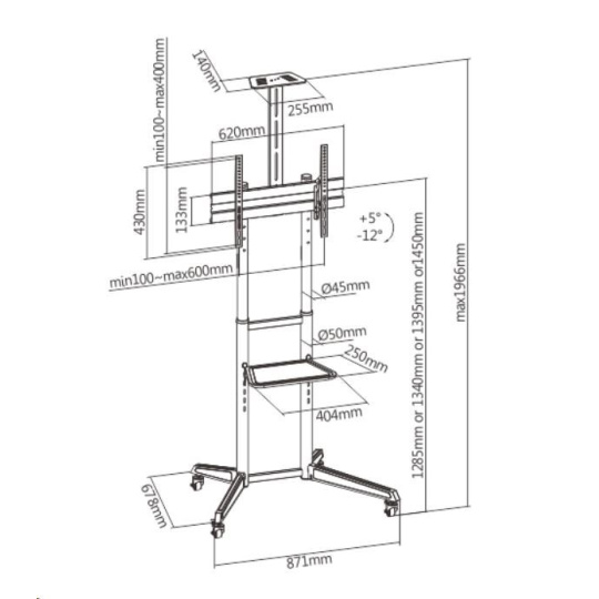 - Rozsah výškového nastavenia1285, 1340, 1395 alebo 1450mm