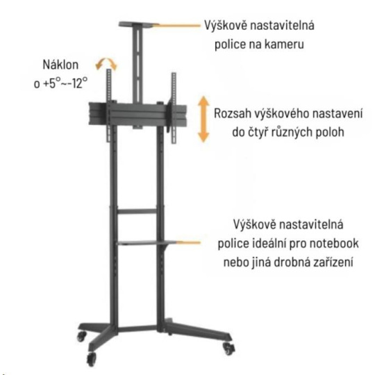 Pojízdný stojan Brateck T1040T pro TV 37"-70" 50kg 2 police
