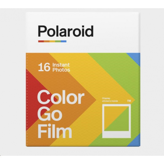 Každé balenie obsahuje 16 farebných okamžitých fotografií s lesklým bielym rámom, pripravených na denné svetlo. Exkluzívne na použitie s fotoaparátmi Polaroid Go. Veľkosť: 66,6 × 53,9 mm / Veľkosť obrázka: 47 × 46 mm Biely rám ASA 640 Vývoj fotografií za 10-15 minút Najlepšie sa skladuje v chladničke.