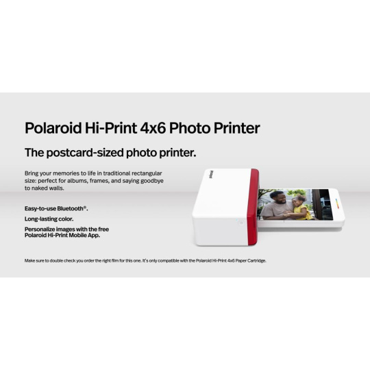- Súčasťou je papierová kazeta Polaroid Hi-Print 4x6 - 80 listov.