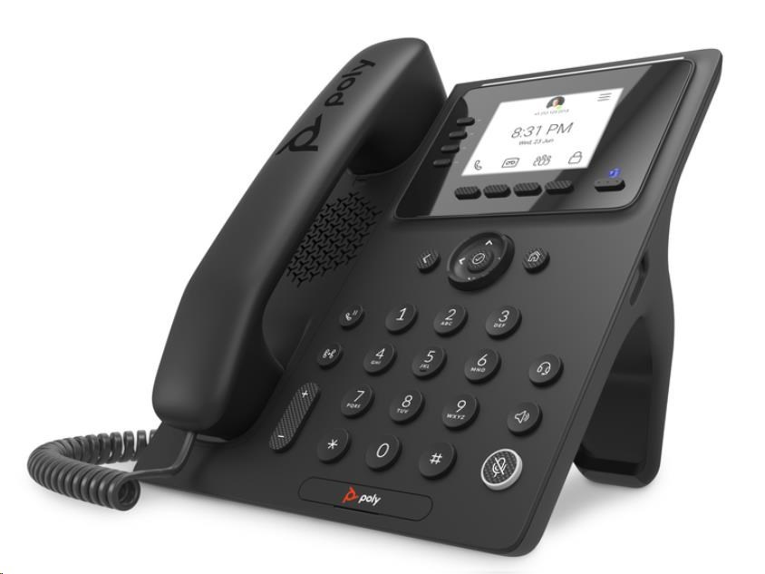 Audio | Technológia Poly Acoustic Clarity zabezpečuje plne duplexné hovory a potláča akustickú ozvenu aj okolité šumy; Individuálne nastavenie hlasitosti s vizuálnou spätnou väzbou pre každú zvukovú cestu; Komfortná tvorba hluku; Generovanie tónov DTMF (RFC 2833 a v pásme); Prenos zvukových paketov s nízkym oneskorením; Analyzovateľná pamäť na vyrovnanie oneskorenia |