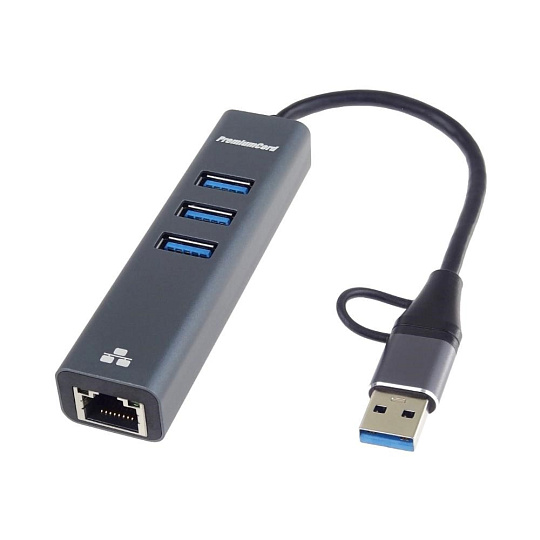 PremiumCord Adaptér USB-C a USB-A na Gigabit 10/100/1000Mbps + 3x USB 3.2 konektor
