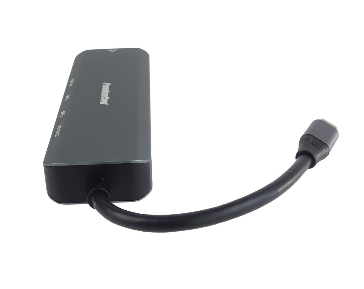 PREMIUMCORD Adaptér USB-C na Gigabit 10/100/1000Mbps + 1x HDMI, 2x USB3.2, 1x PD 100W konektor, Šedá