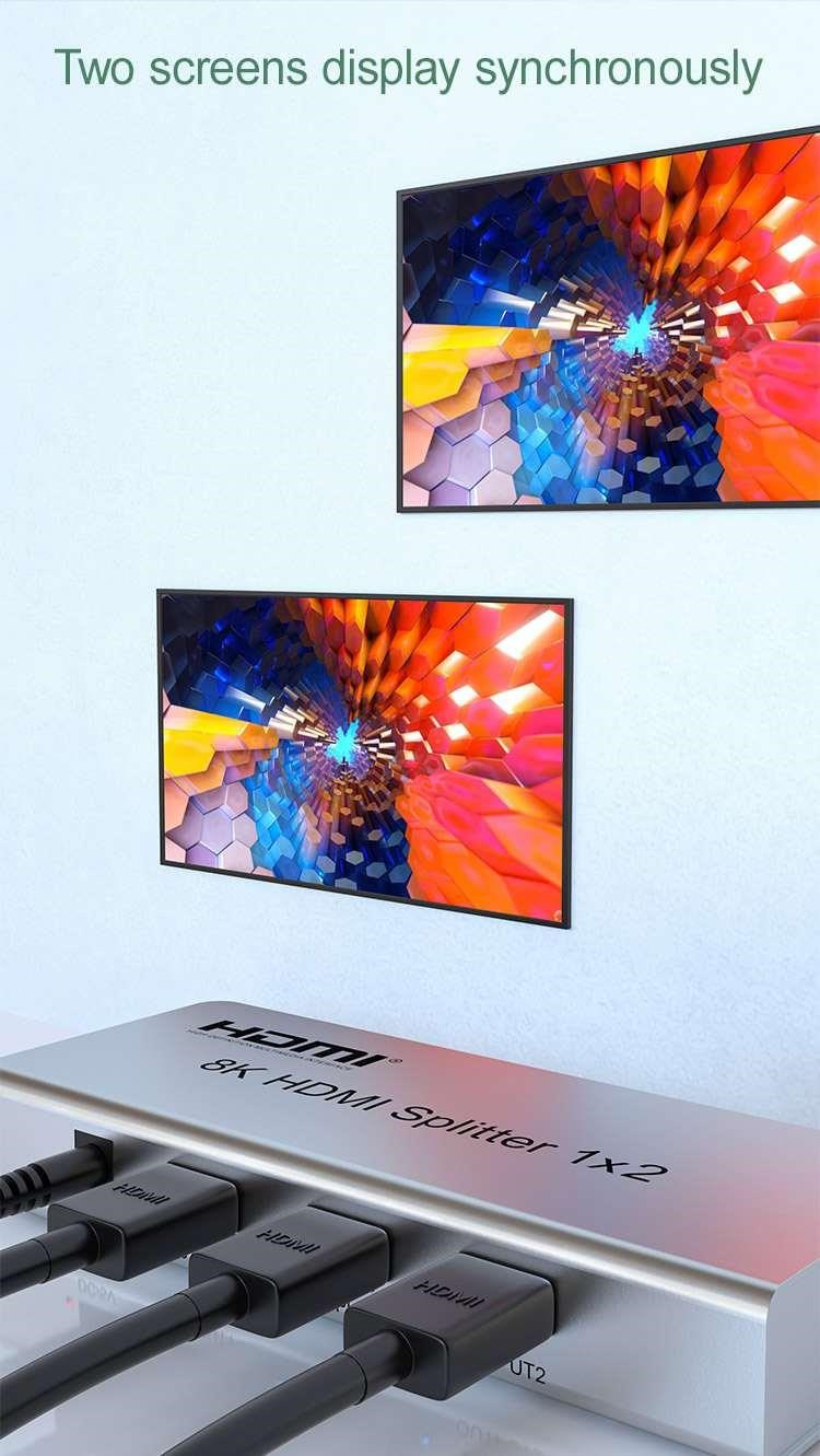 Splitter podporuje HDMI signál s rozlíšením až 8K@60Hz, 4K@120Hz alebo FULL HD 1080p