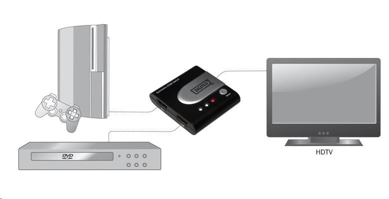 Prepínač HDMI 2 ->1 automaticky 2 zariadenia HDMI zdieľajú 1 zariadenie HDMI (obrazovku). Výber zariadenia je buď automatický, alebo pomocou tlačidla. Podporuje 20m kábel HDMI na vstupe, až 25m kábel HDMI na výstupe prepínača HDMI. Podpora 3D HDMI role 480i, 480p, 720i, 720p,1080i a 1080p Podpora VGA,SVGA,XGA,UXGA režimu HDMI 1.3b 8bit, 10bit a 12bit farebná hĺbka na kanál Výber vstupu pomocou tlačidla / automaticky. Plug-and-play, nie je potrebný žiadny softvér. - Kompatibilný s HDCP V balení: 1x prepínač HDMI 1x 0.5 m pripojovací kábel HDMI..