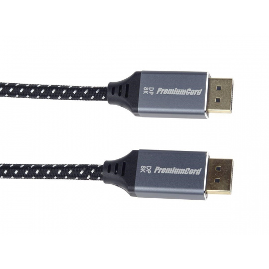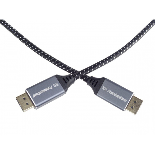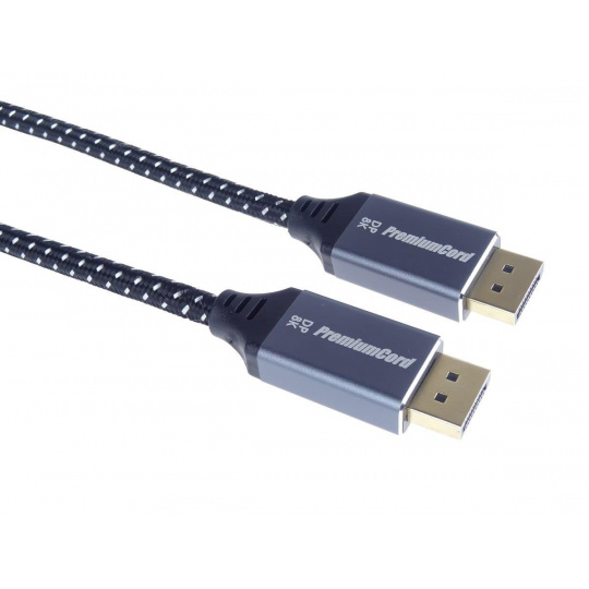 PremiumCord DisplayPort 1.4 pripojovacie káble M/M pre rozlíšenie 8K, kovové krytky a pozlátené konektory, 1,5 m